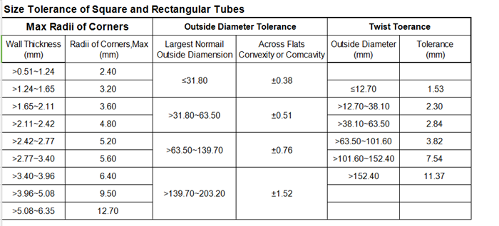 ASTM A554不鏽鋼方管、矩形管公差範圍